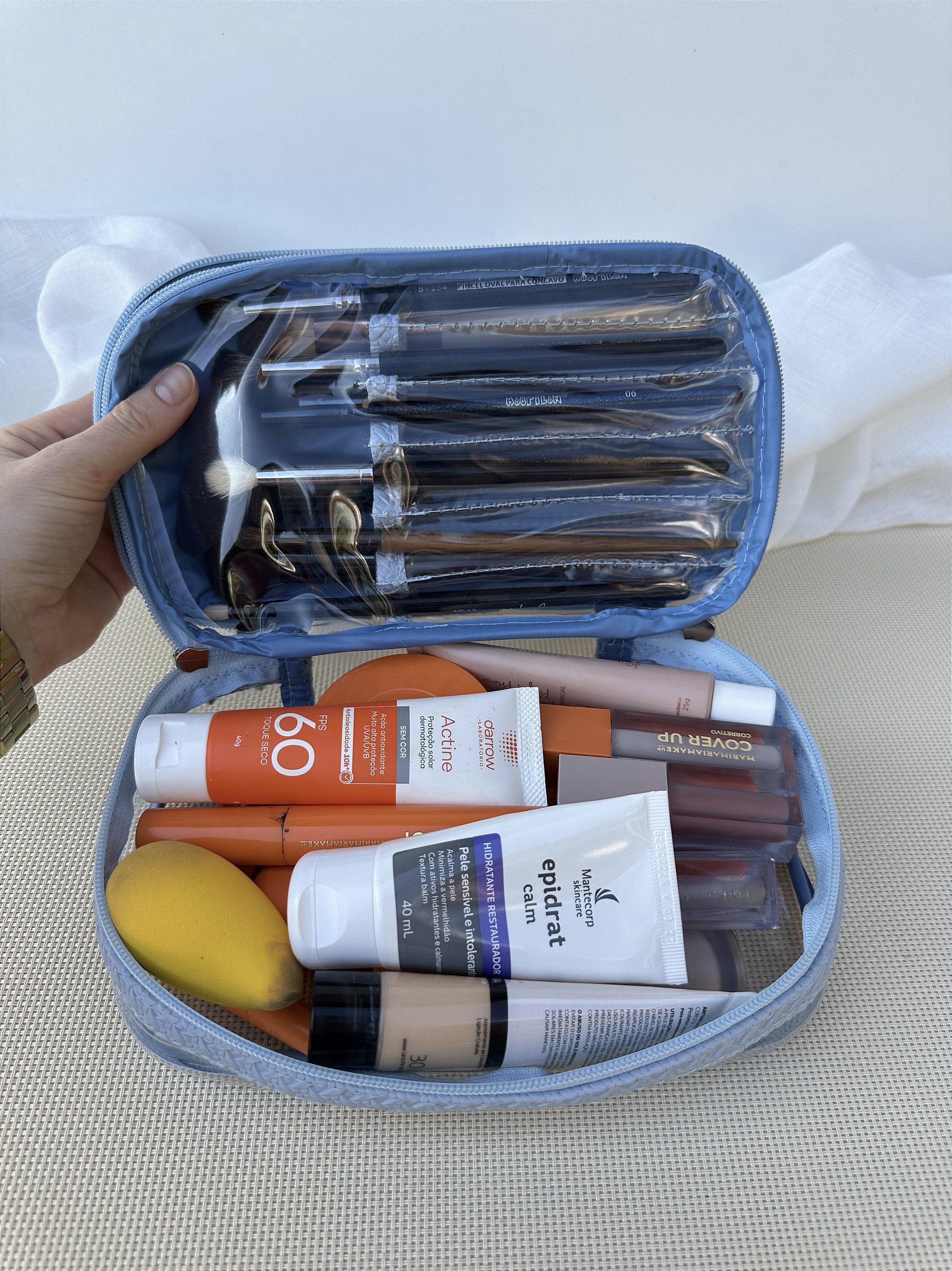 uma necessaire exclusiva para guardar suas maquiagens e pinceis.